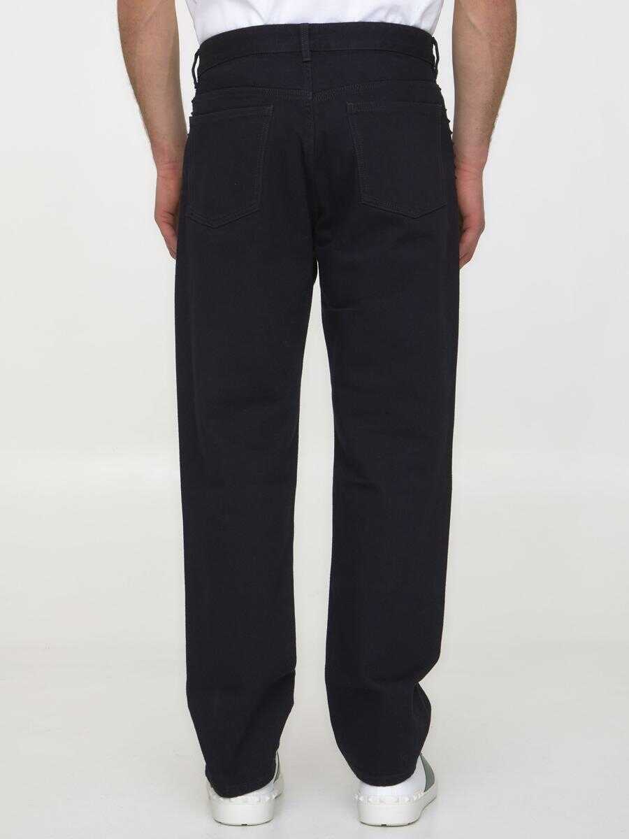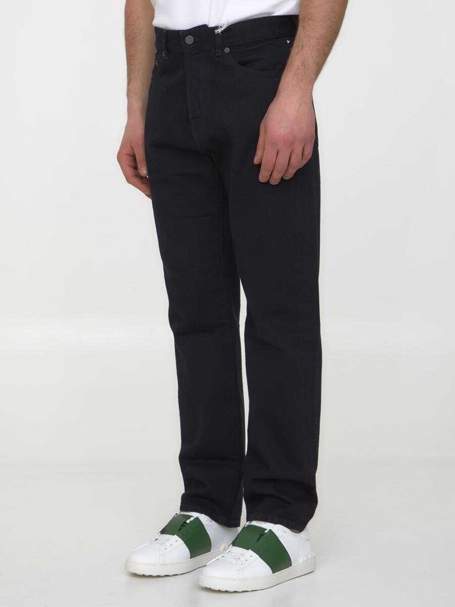Black denim jeans with Black Untitled studs on both sides. It features button closure, five-pocket design and belt loops.