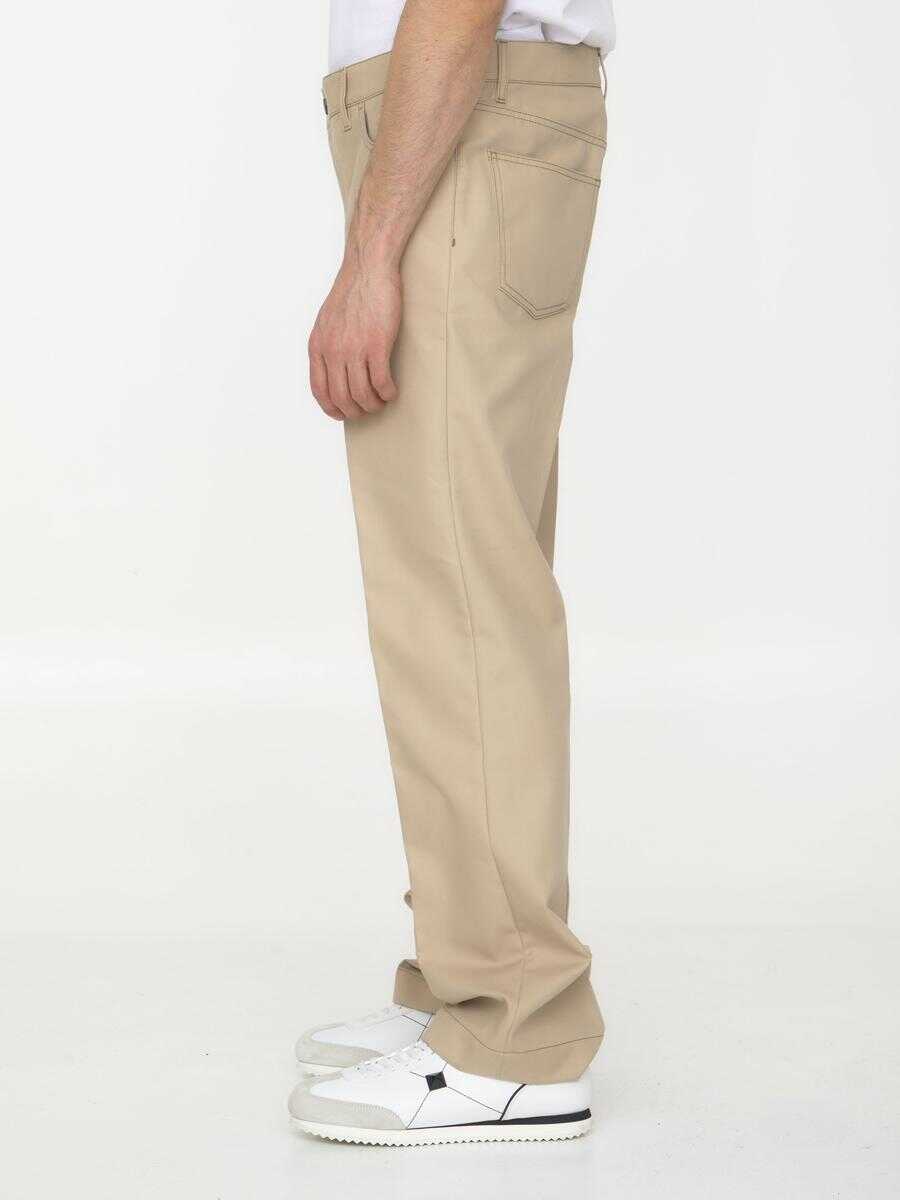 Beige cotton gabardine trousers. It features zip and button closure, five-pocket design and belt loops. Regular fit.