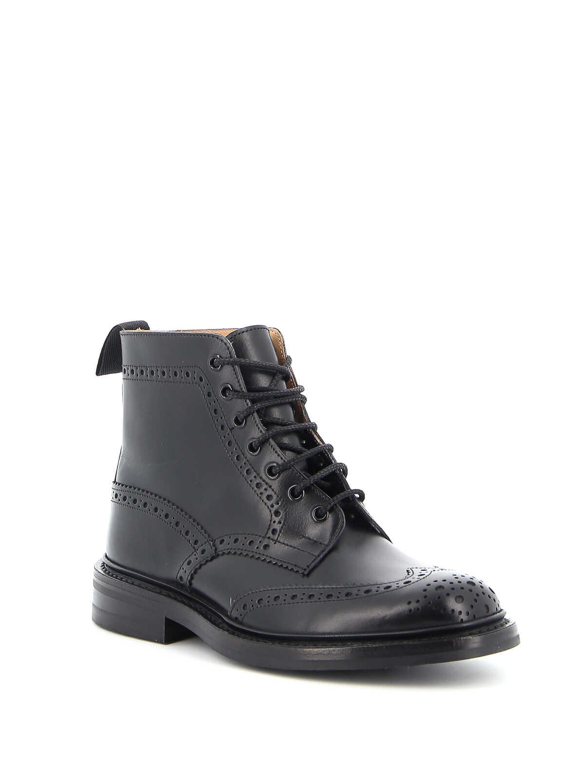 Black leather ankle boot, with brogue processing and dovetail detail, leather insole, dainite rubber sole.