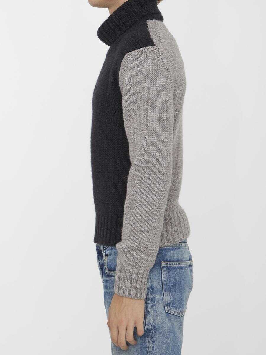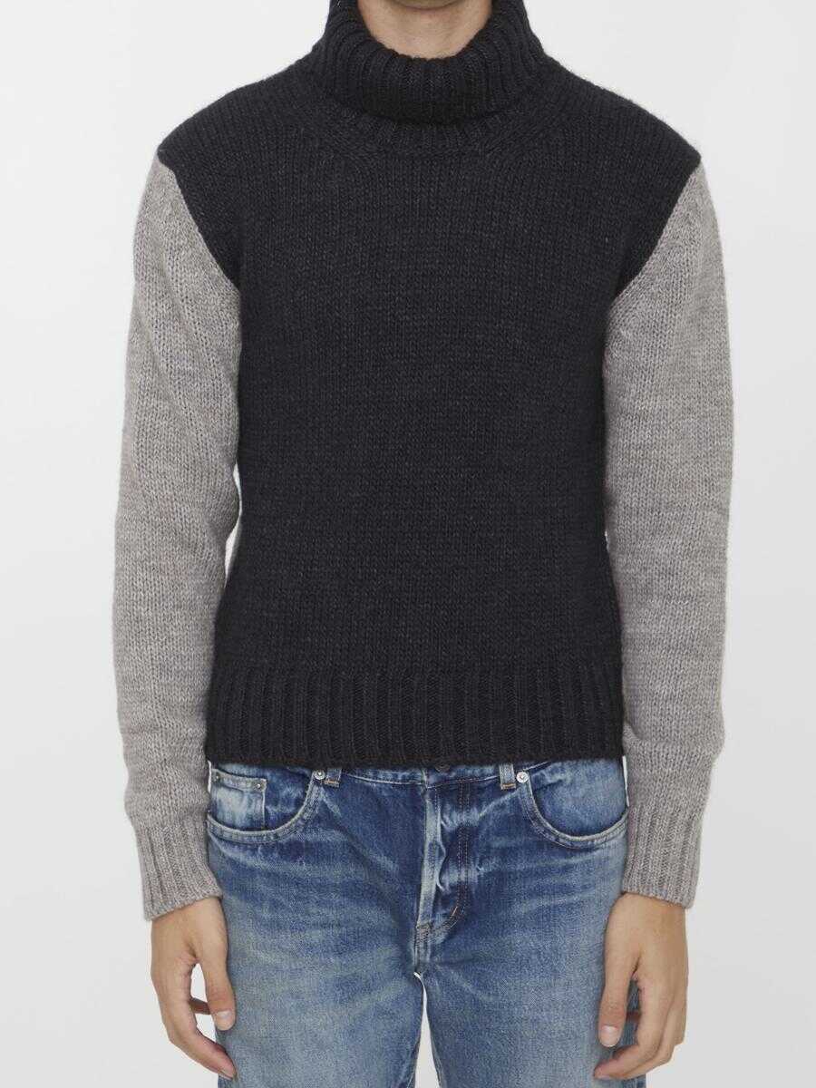 High-neck jumper in black and grey wool blend. Ribbed finishes. Regular fit.