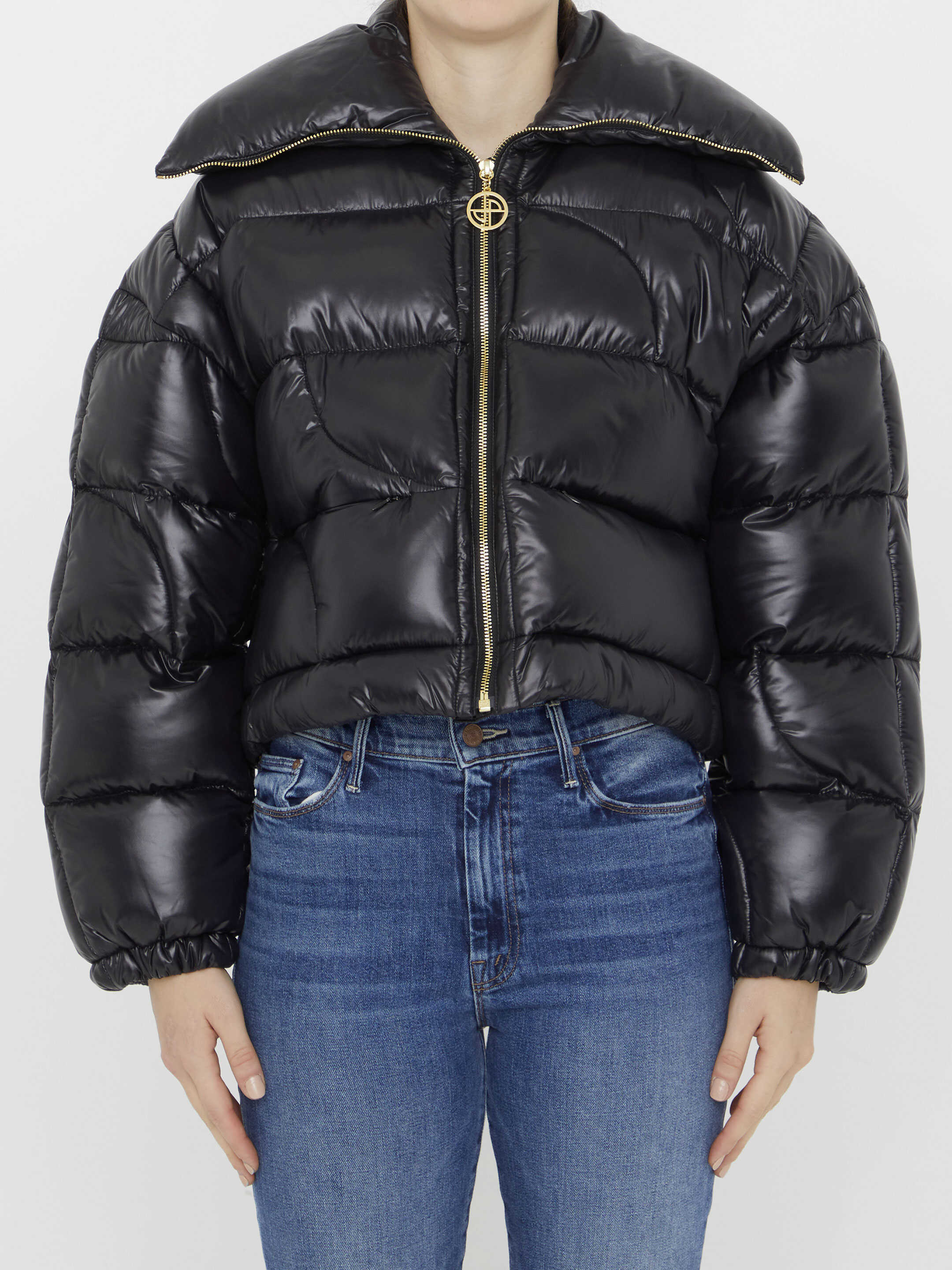 JP short puffer jacket in black quilted nylon with down filling. It features front zip closure, two front zip pockets and stretch cuffs. Regular fit.