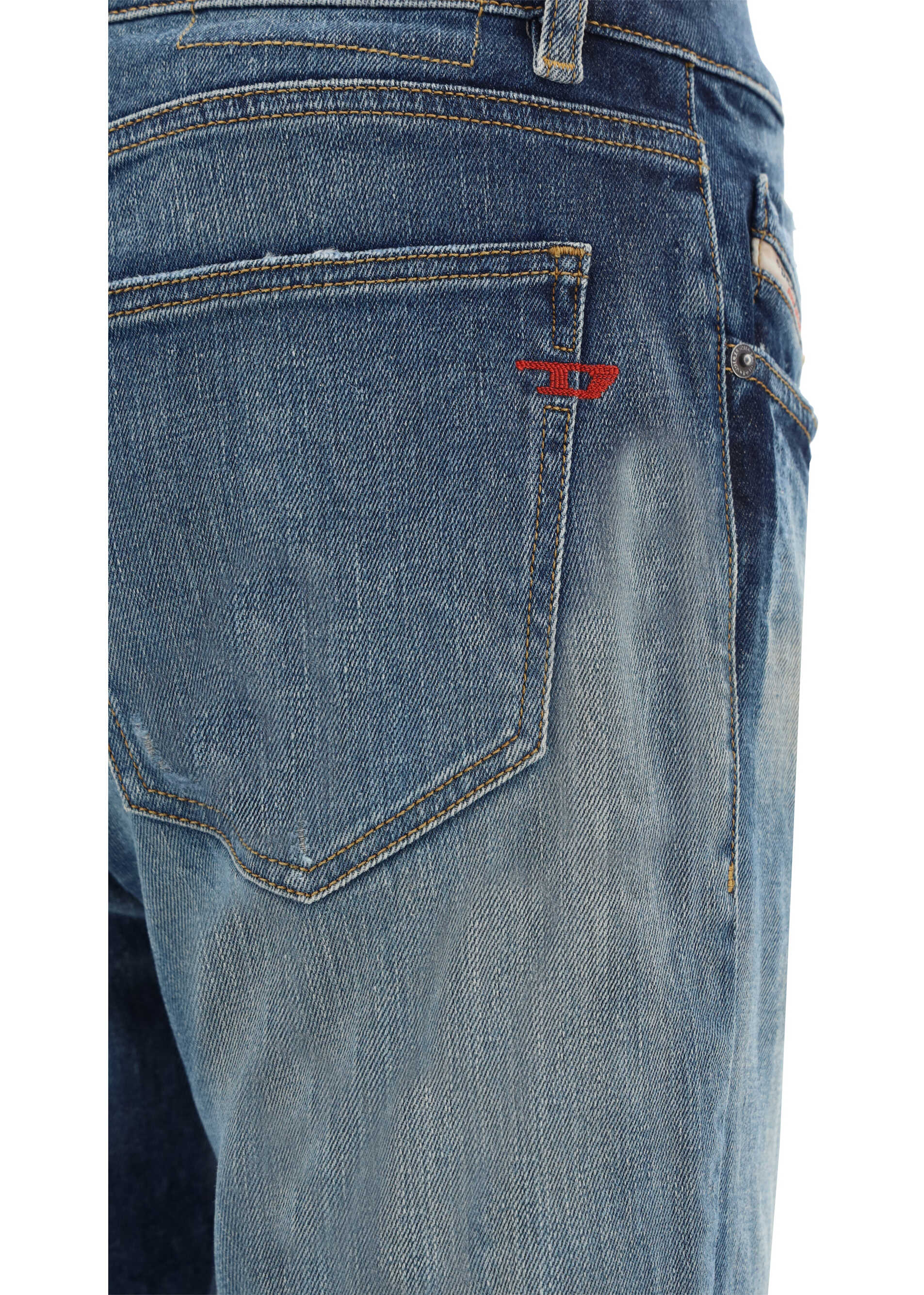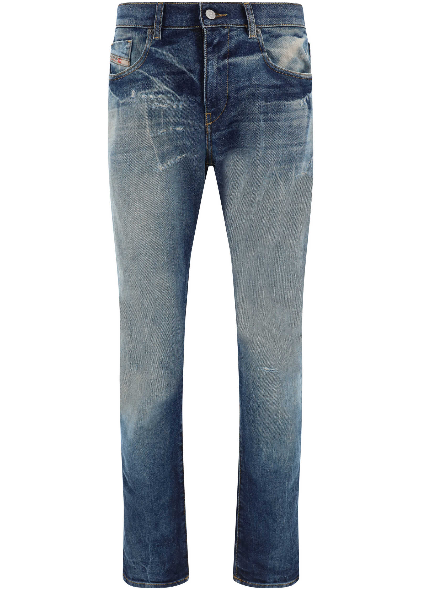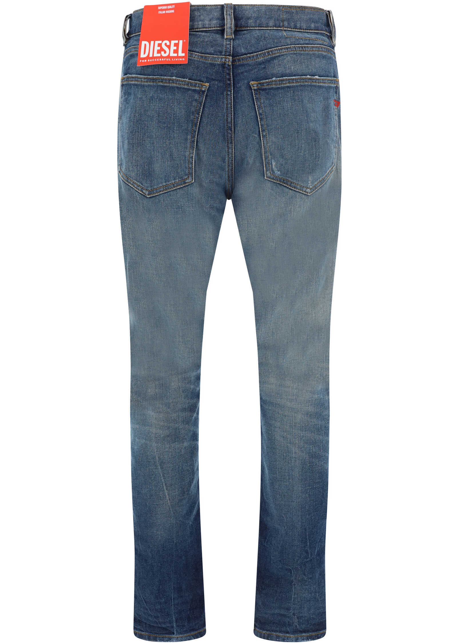 D-Strukt Jeans by Diesel, button and zipper front closure, five-pocket straight style, waistband loops, faded-effect monochrome design, contrasting embroidered iconic brand logo on back, regular fit.