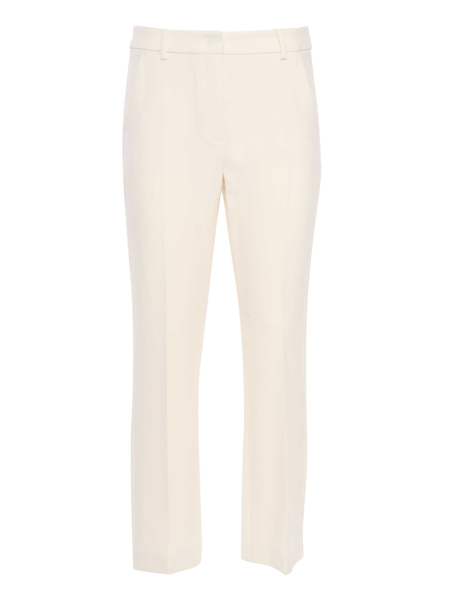 Stretch viscose blend pants, straight leg, crop fit, ironed crease, slanted pockets, welt pockets with button on the back, zip fastening, flap and hook