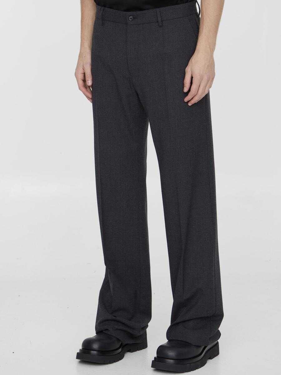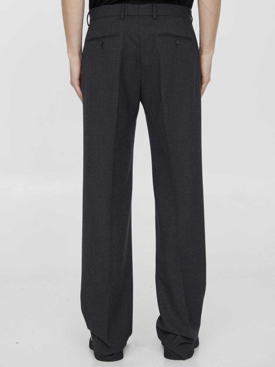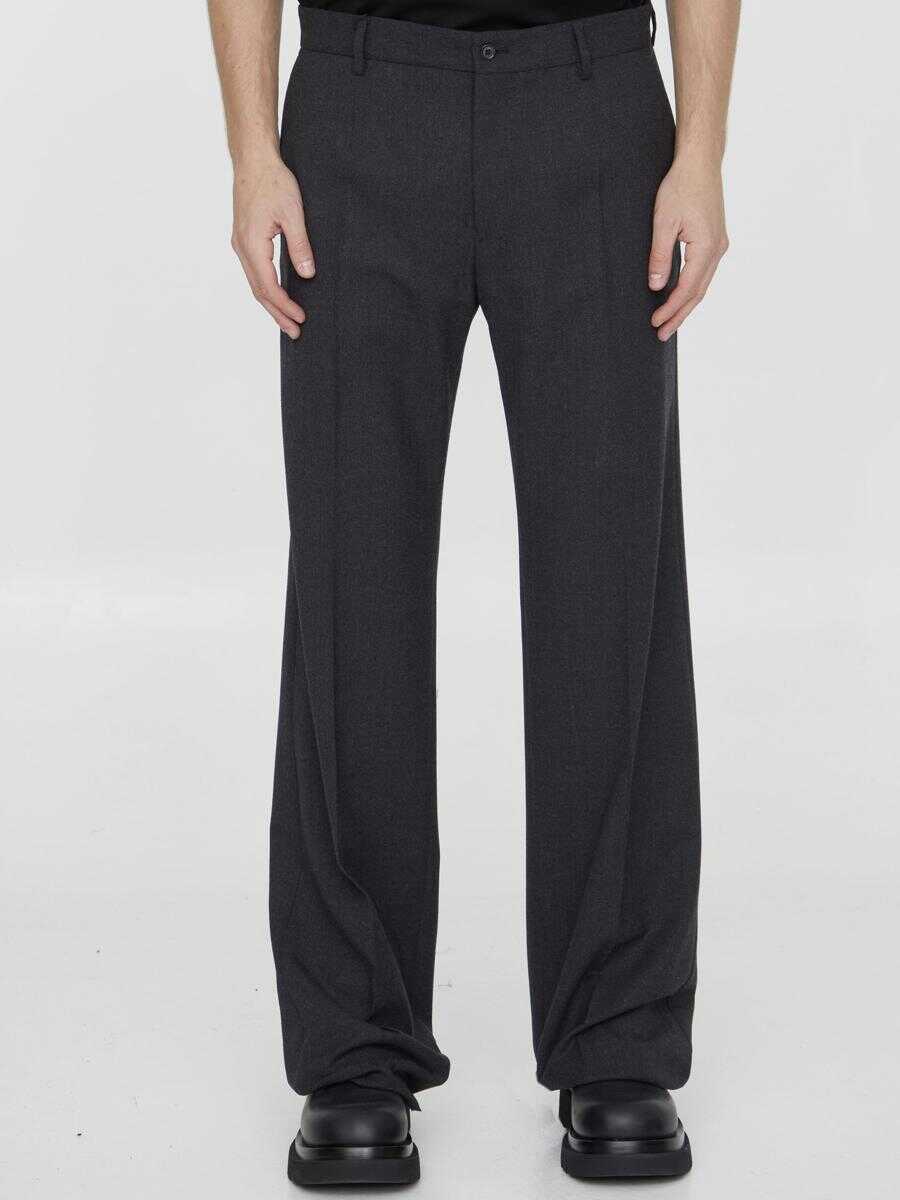 Straight-leg trousers in grey stretch flannel. It features zip and button closure, two side welt pockets, two rear buttoned welt pockets and belt loops. Regular fit.