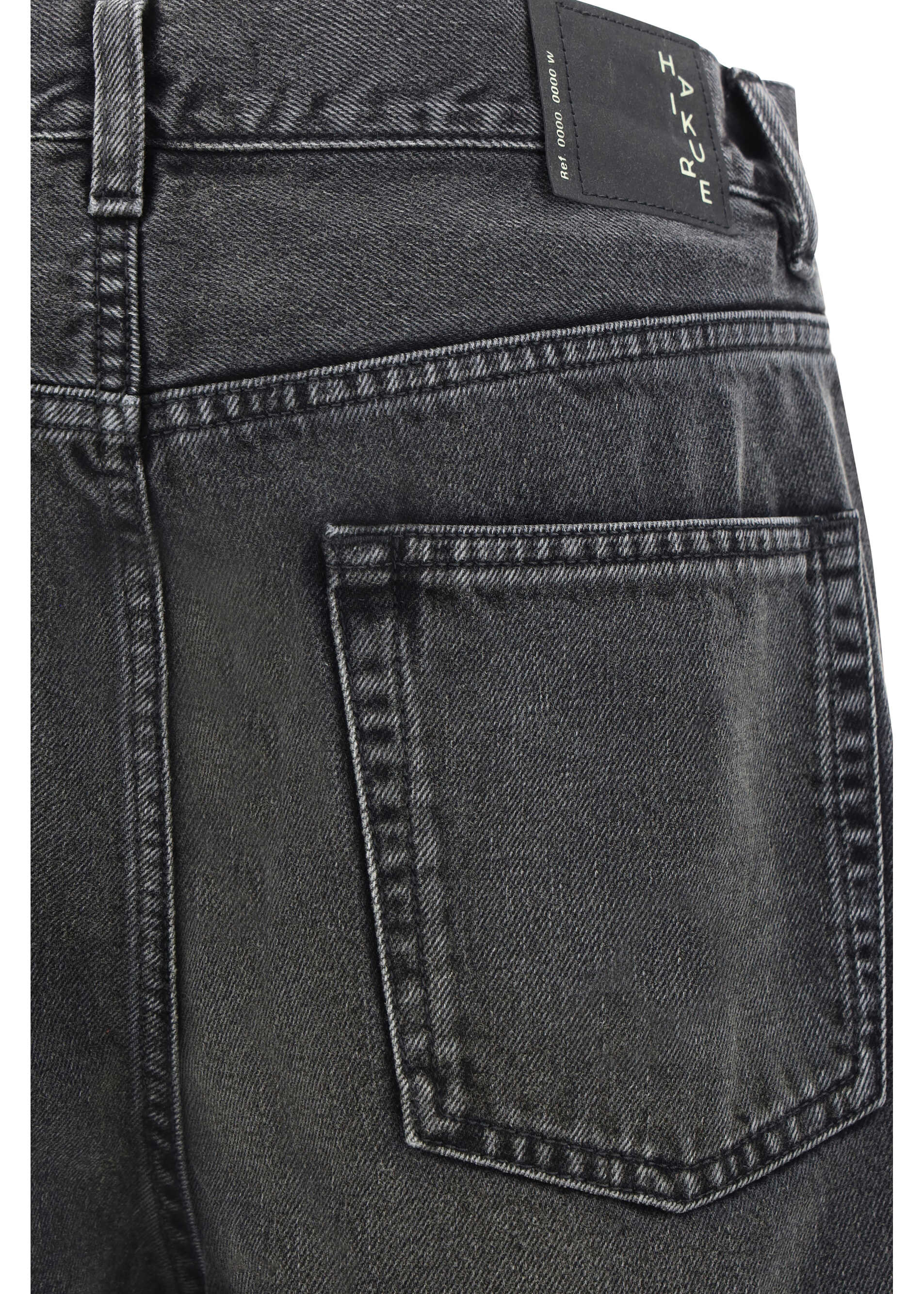 Cotton Jeans by Haikure, five-pocket straight style, waistband loops, front button and zipper closure, monochrome design, regular fit.