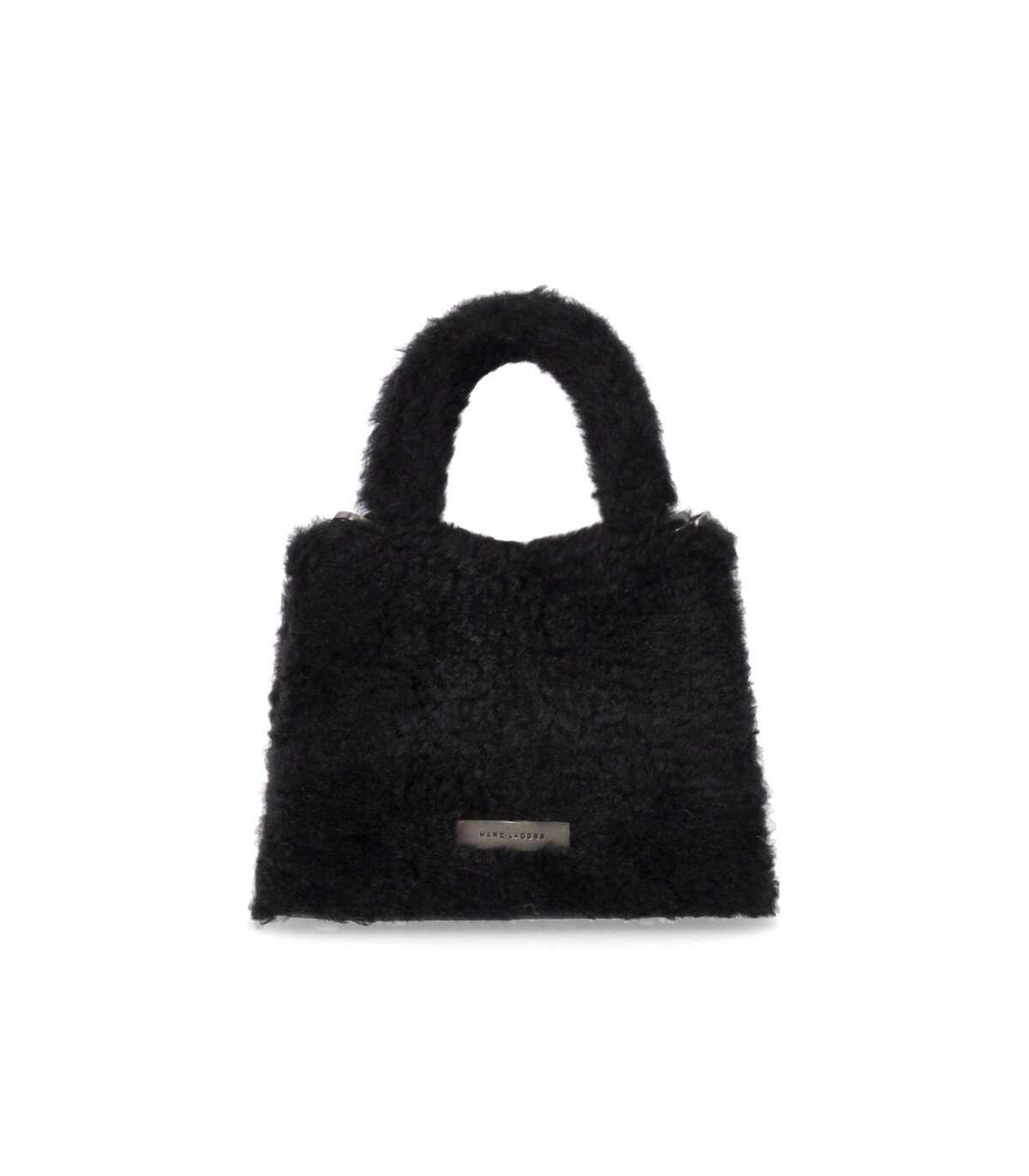 Marc Jacobs The Teddy St. Marc Mini Top Handle made of teddy fabric and leather in shades of lilac. Magnetic closure embellished with silver chain effect logo and contrasting interior, equipped with card slots, with imitation leather lining. Logo plaque on the back and removable chain shoulder strap. Measurements 19x10x15 cm.