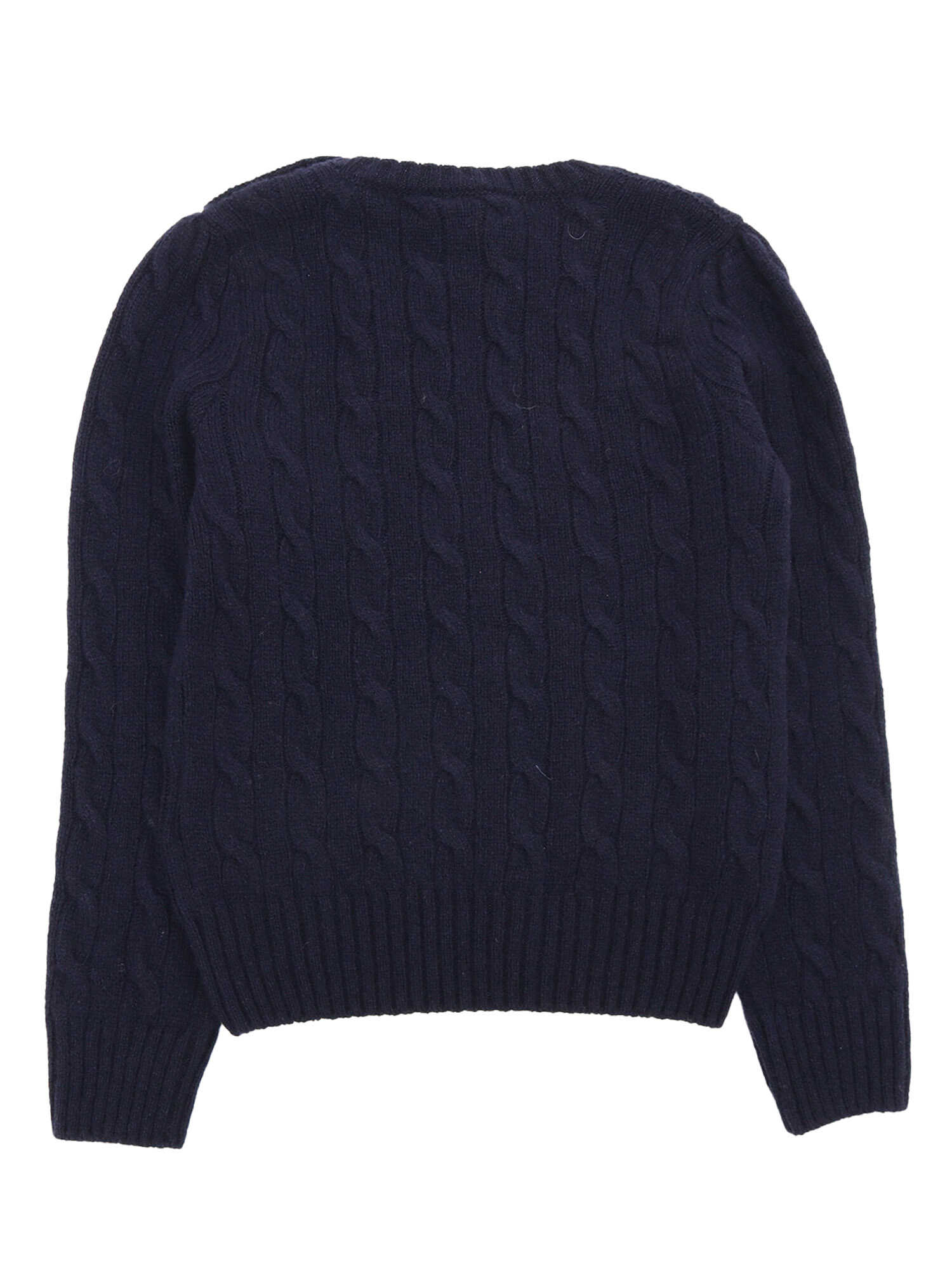 Wool and cashmere sweater, cable knit, ribbed edges, crew neck, Pony logo embroidery, button shoulder fastening