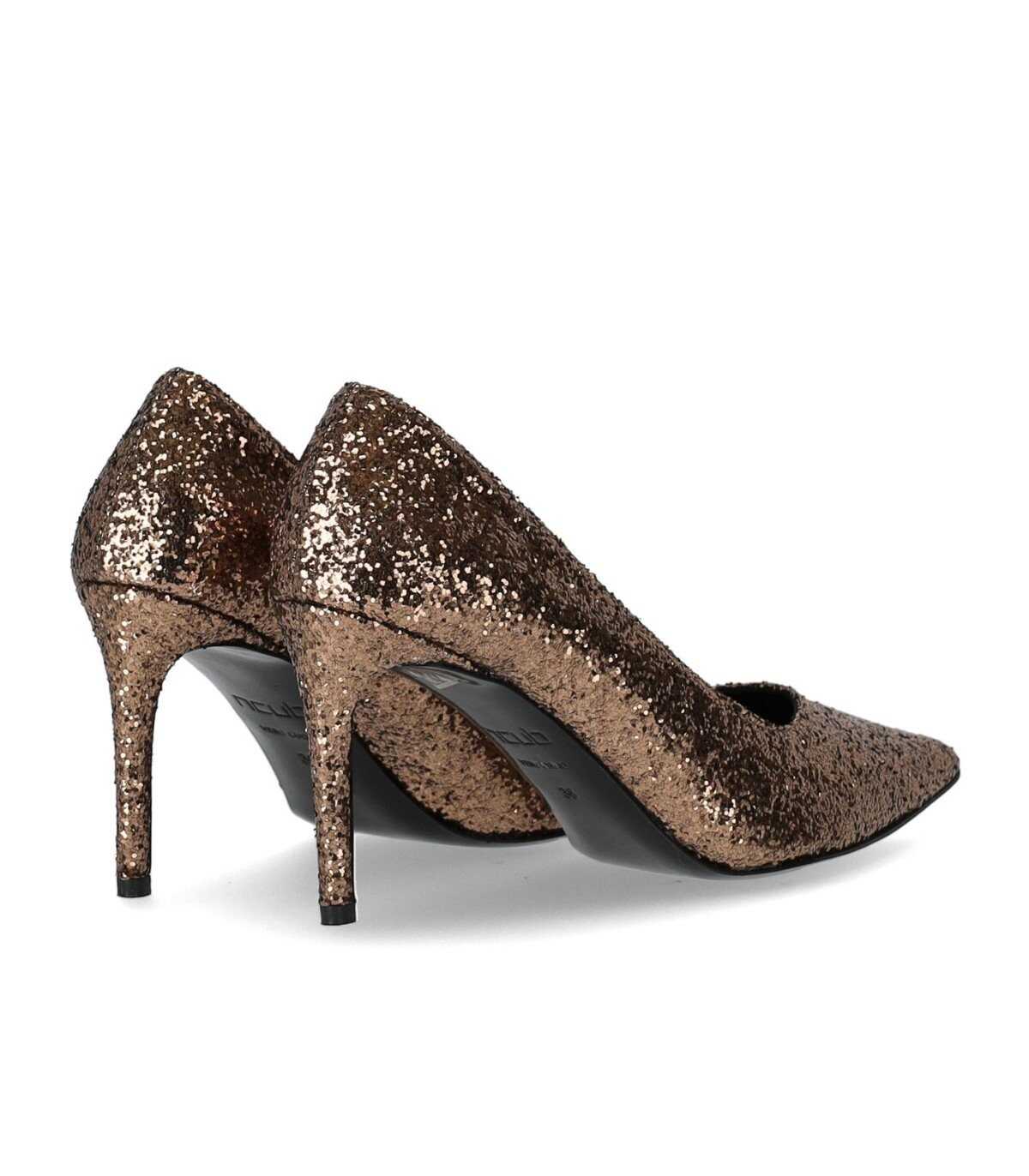 Ncub Bit pump in bronze glitter-covered leather. Leather interior and leather sole. Stiletto heel, height 8 cm.