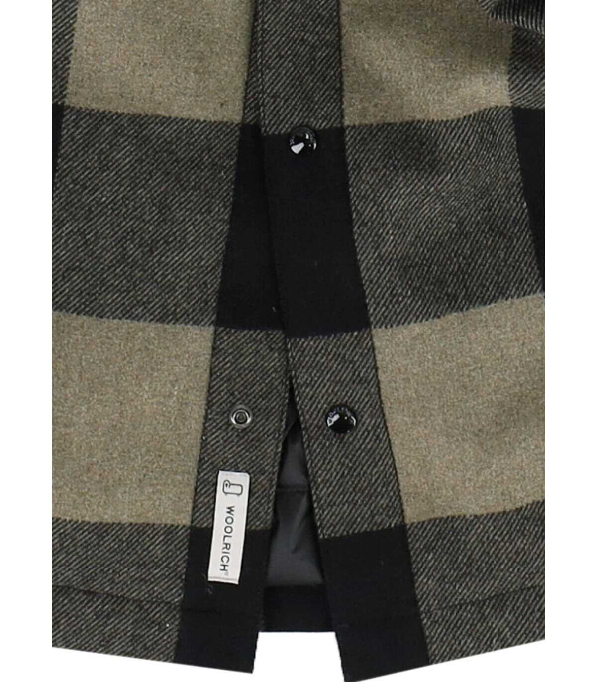 Woolrich's Alaskan Melton shirt jacket, made from a mix of recycled wool with a check pattern in shades of beige and blue, features chest pockets with buttons and a logo label on the side. It has a button closure on the front and a regular fit.