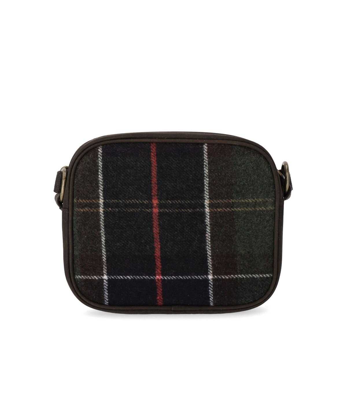 Barbour's Contin Classic shoulder bag is made of brown nylon with wool details in the iconic tartan pattern. It features an external pocket and an internal zip pocket. The bag closes with a zipper and has an adjustable fabric shoulder strap. Its dimensions are 19x15.5x6 cm.
