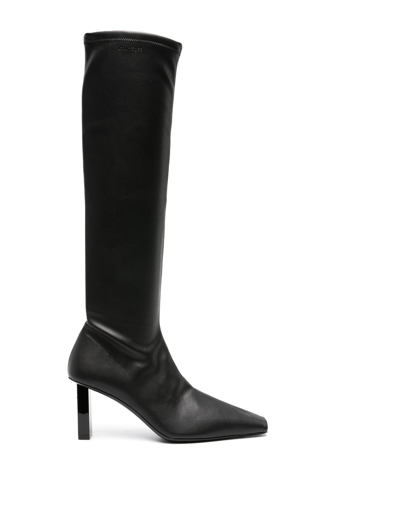 A statement lacquered block heel lends a retro-inspired flair to Courrèges' AC Charm knee-high boots. The pair is made in Italy from smooth vegan nappa leather and adorned with a silver-tone logo plaque.