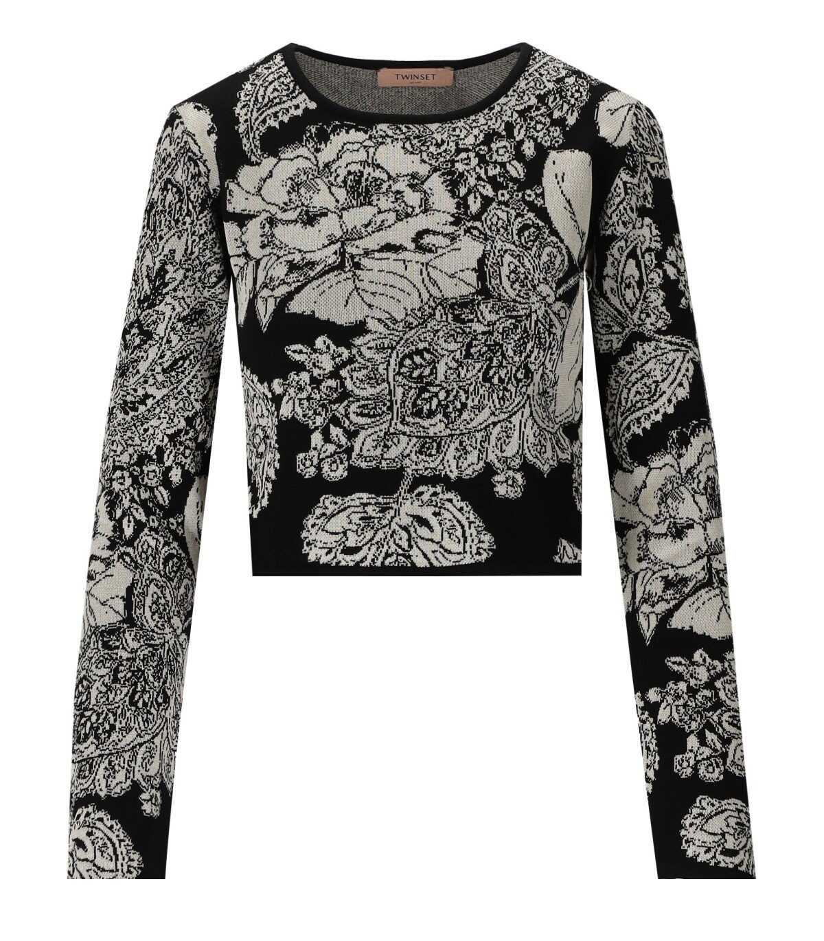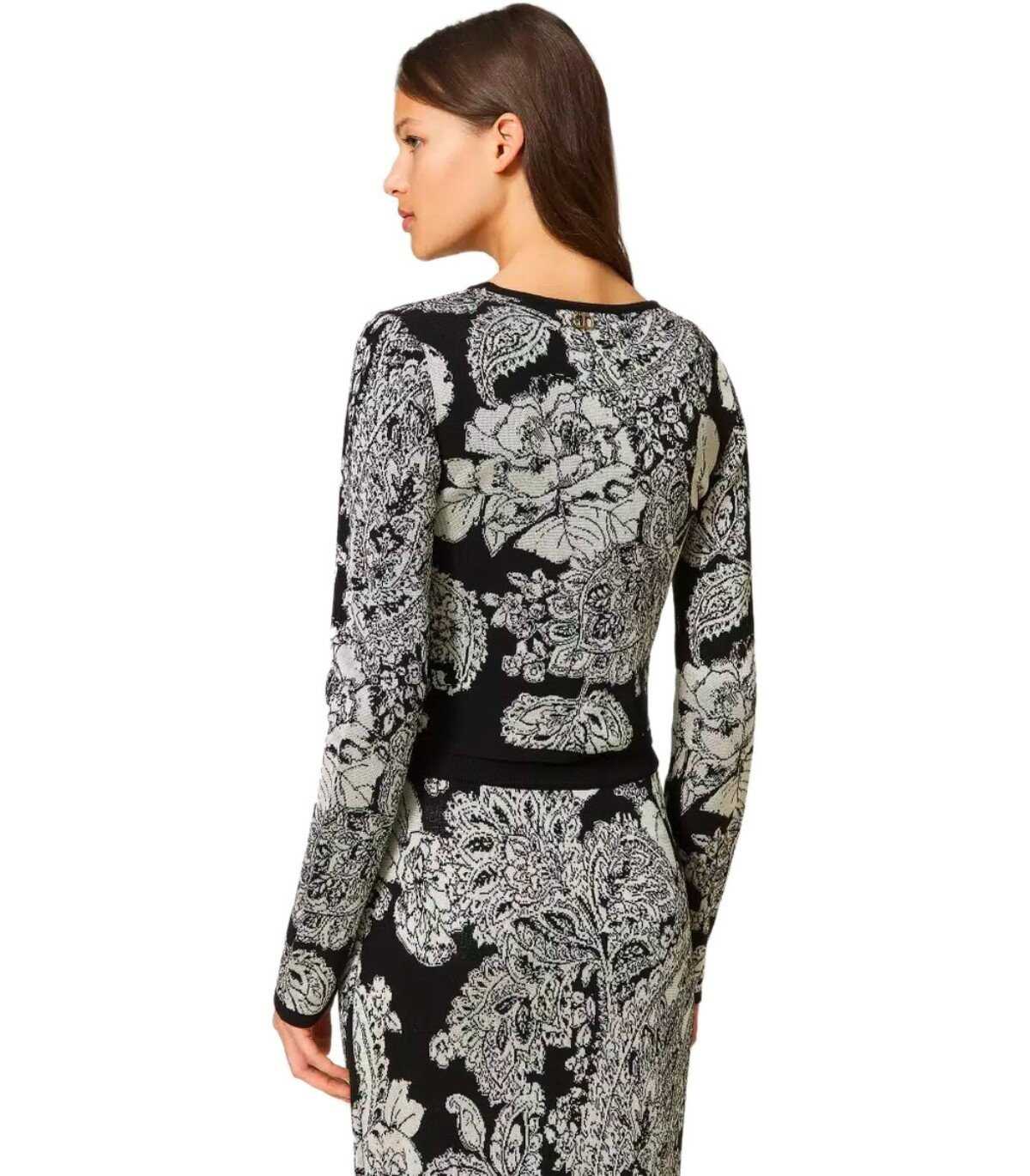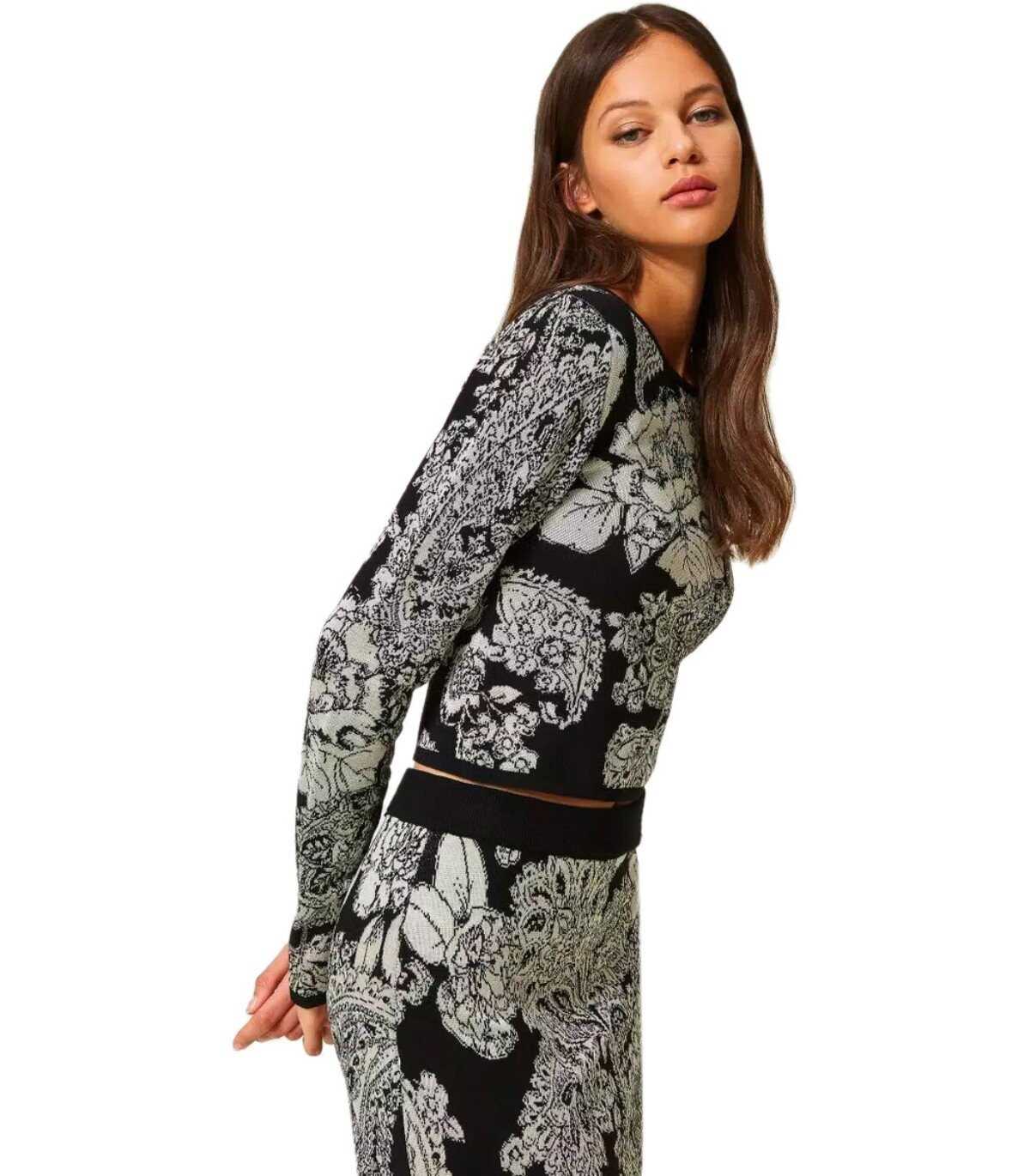 TWINSET BLACK JACQUARD KNITTED CROP TOP