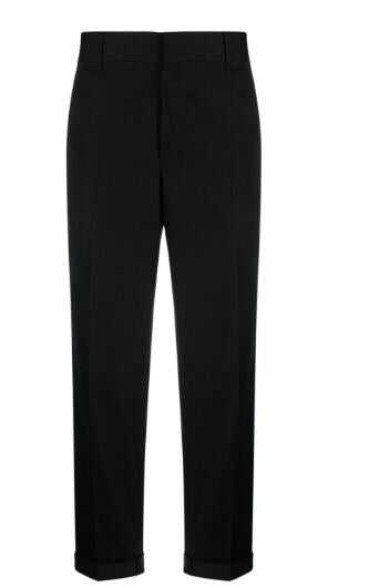 black cotton blend logo patch to the rear star stud detailing turn-up cuffs straight leg cropped concealed front fastening belt loops two rear button-fastening pockets