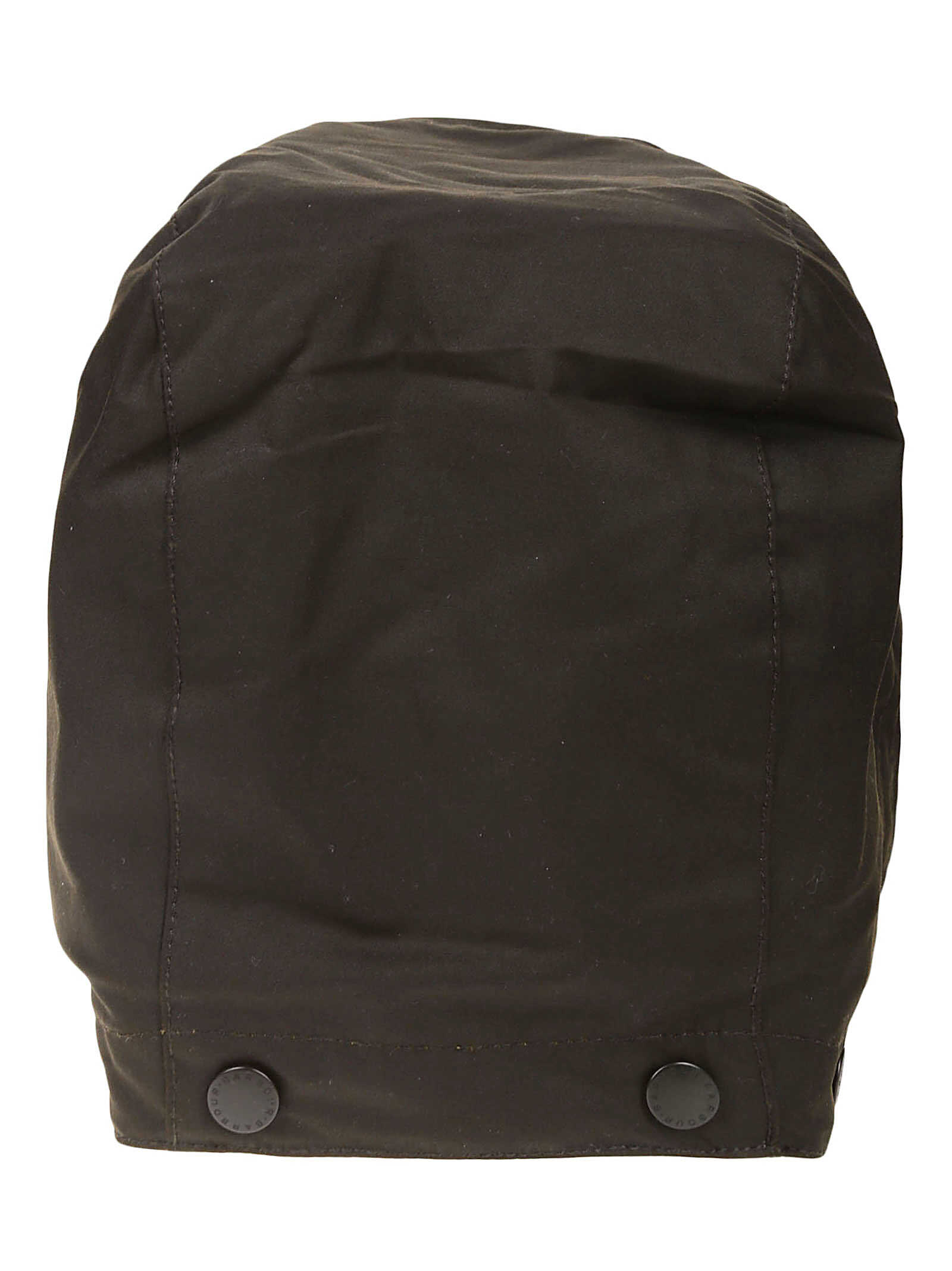 `BARBOUR hood made with 170-gram waxed cotton, adjustable for Barbour jackets with snap buttons.`