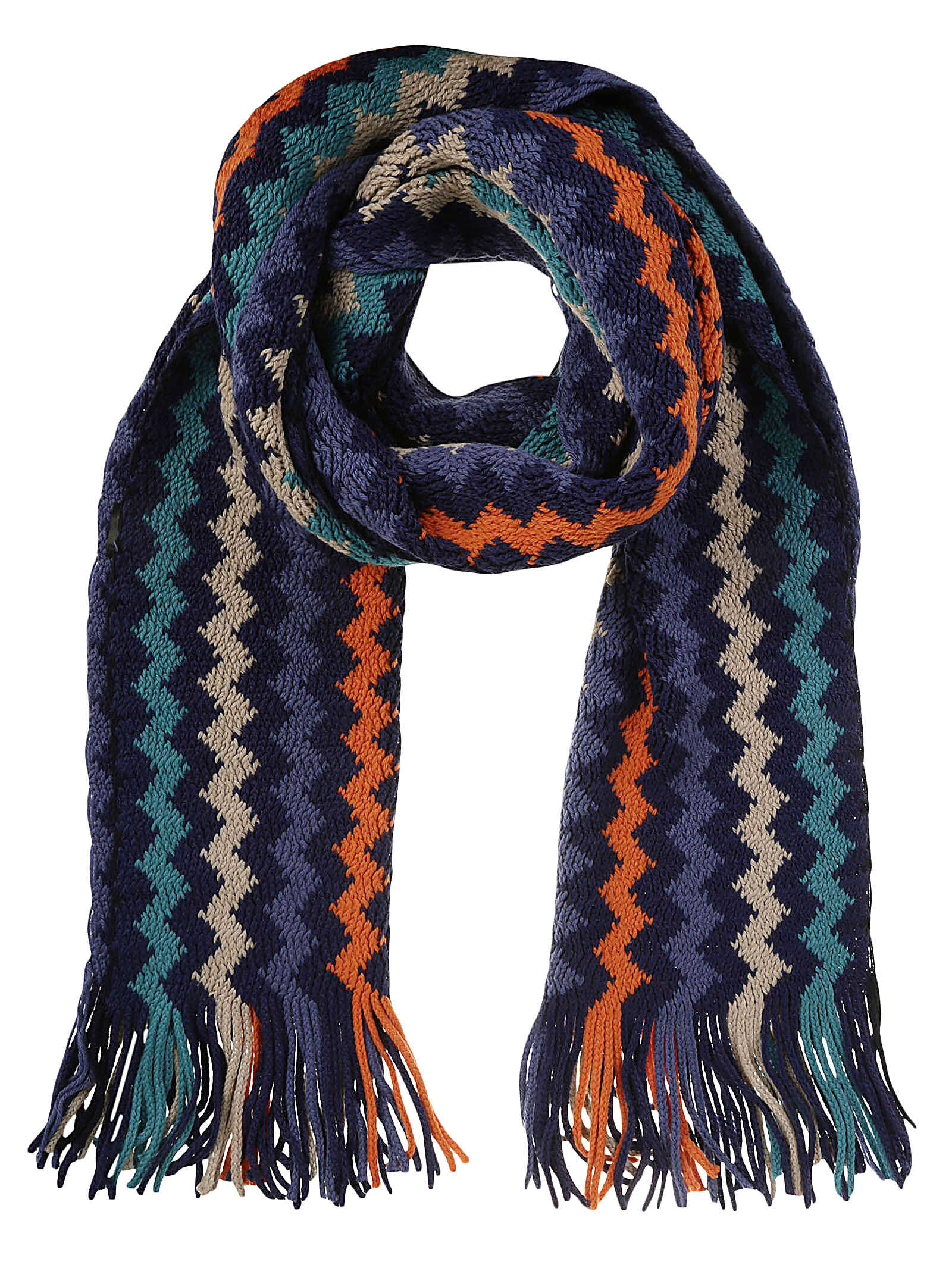 MISSONI Zig zag wool blend scarf with fringes. Composition: MAIN: 50% Acrylic, 50% Wool.