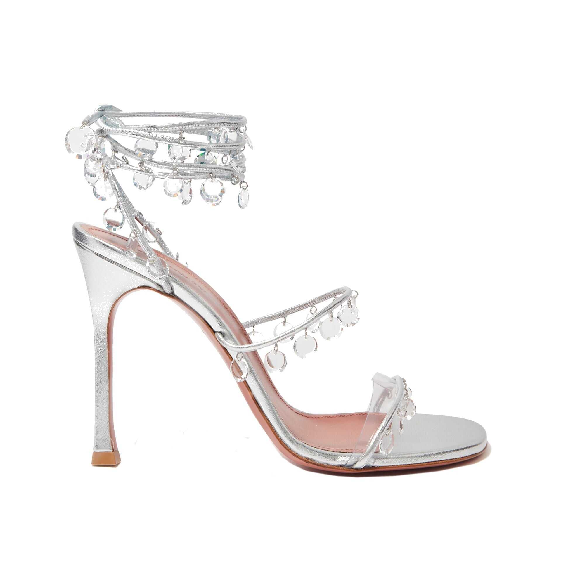 - Composition: 100% calf leather - Inner: Leather - Insole: Leather - Sole: Leather - Round toe - Heel 10,5 cm - Ankle wrap - Tie closure - All-over crystal appliqués - Made in Italy - Gender: WOMEN - MPN TINA LACEUP_SILVER - Code: SHO 1N 2 SN SS P00006 275