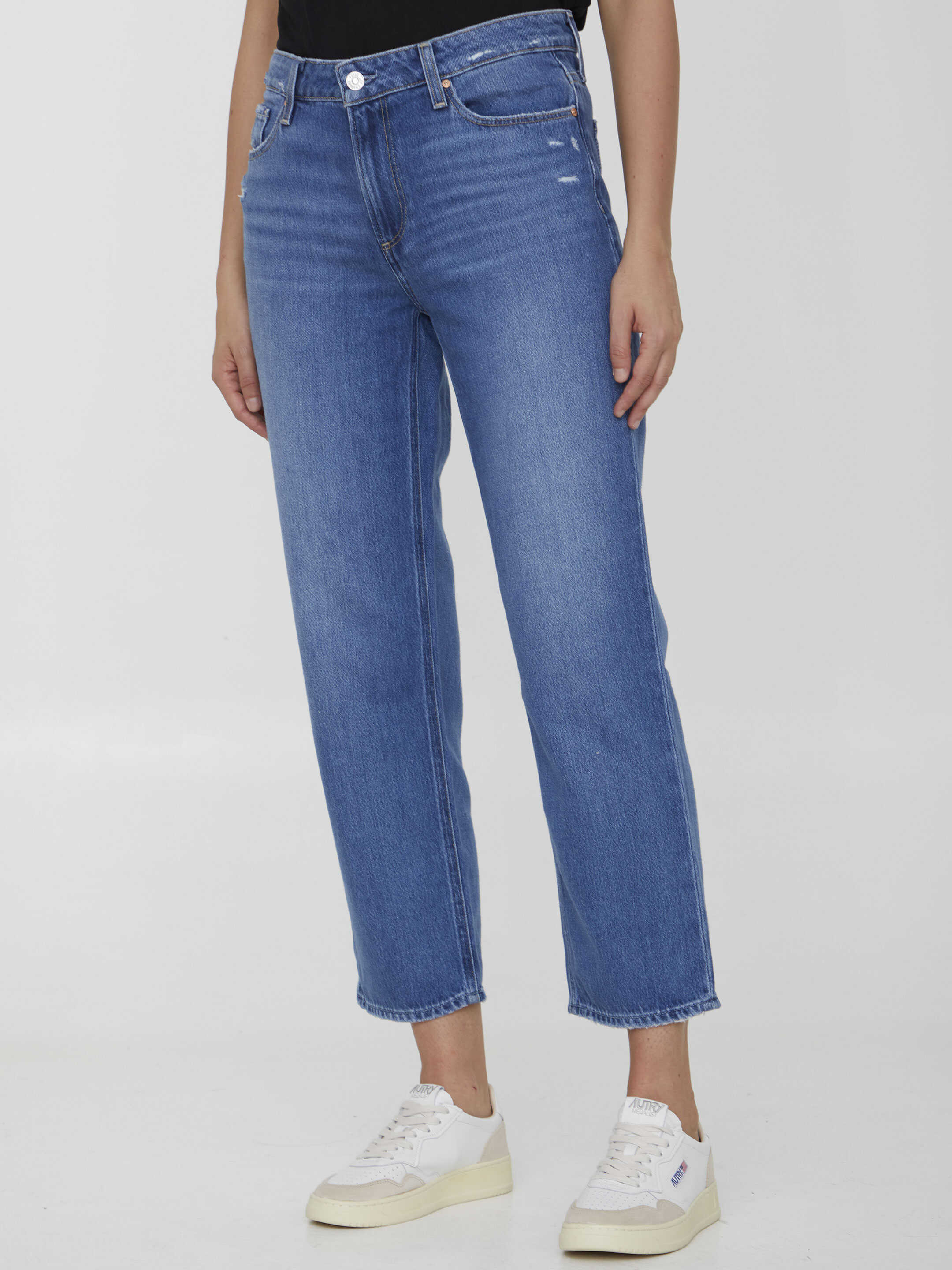 Noella jeans in washed denim with destroyed details. It features zip and button closure, five-pocket design and belt loops. Regular fit.