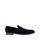 Dark blue leather velvet effect branded insole round toe slip-on style flat leather sole