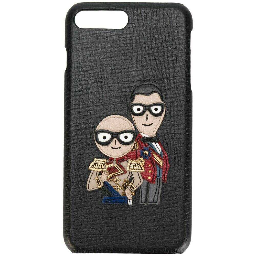 Dolce and gabbana live and breathe italian spirit - reflected within their collection of sleek ready-to-wear and accessories that redefine sicilian seductiveness. this black iphone 7 case depicts the italian design duo wearing military uniforms. fashioned from luxe leather, this military designer's patch iphone 7 case from dolce & gabbana features a pebbled leather texture and an internal logo stamp.