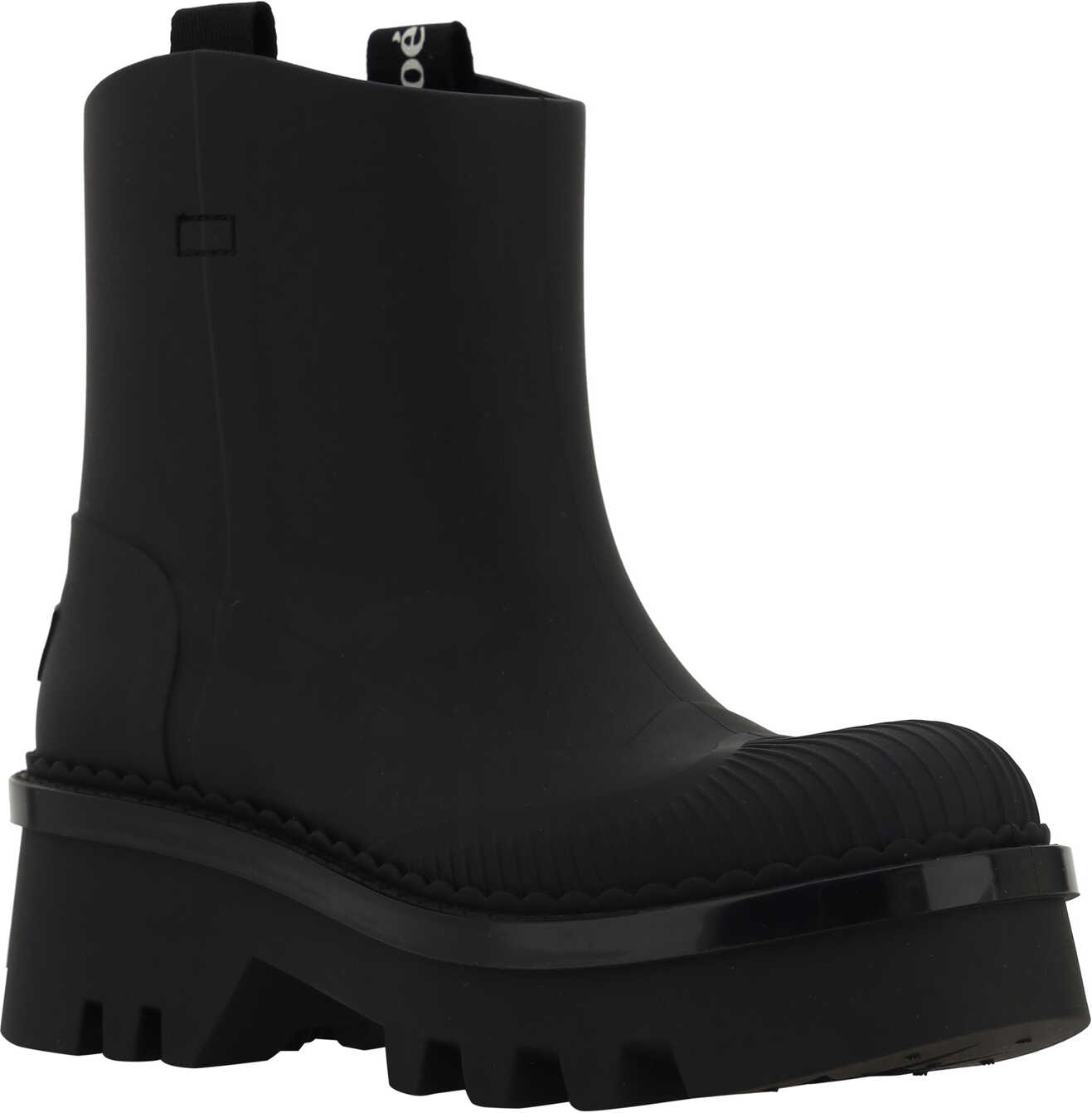 Raina Boots by Chloé, water-resistant design, rubber block heel, ankle-length model, double nylon puller for easy fit applied to side panels, monochrome pattern.