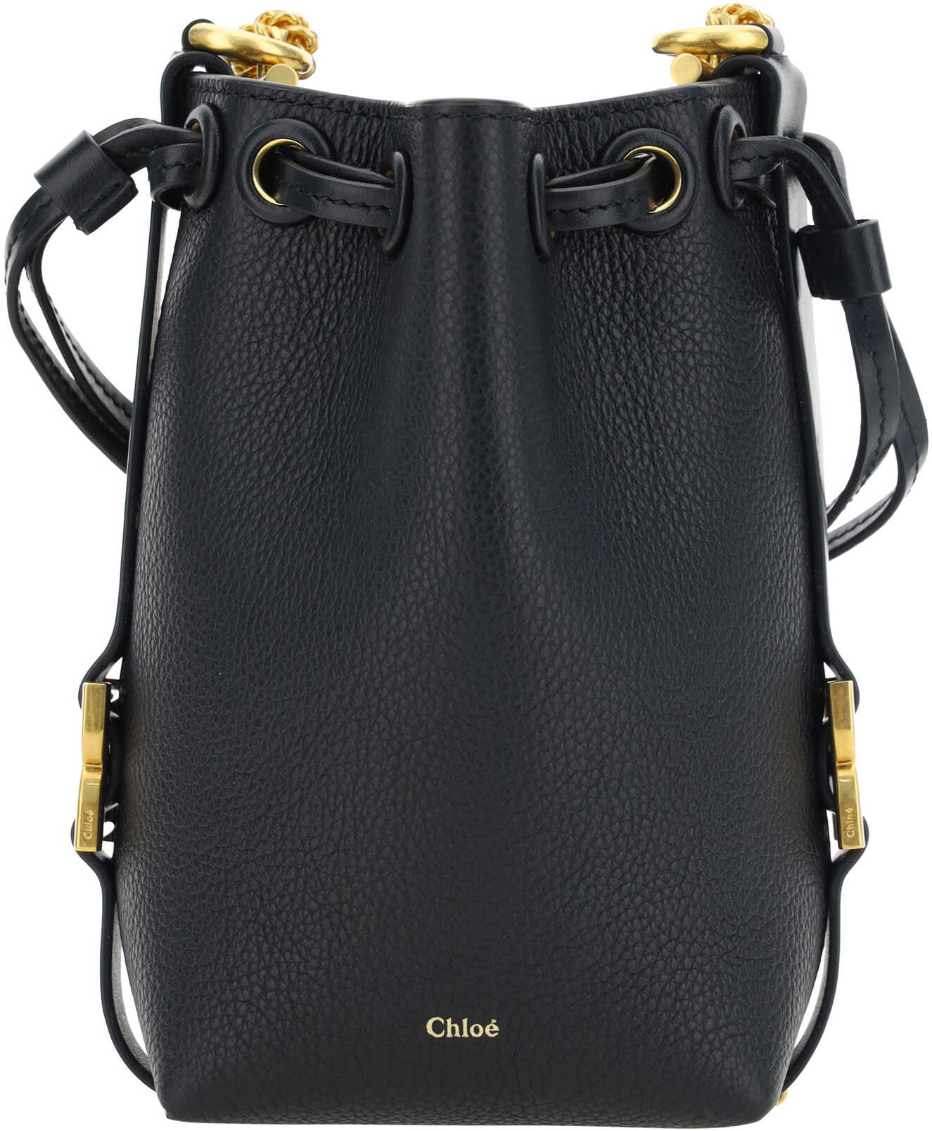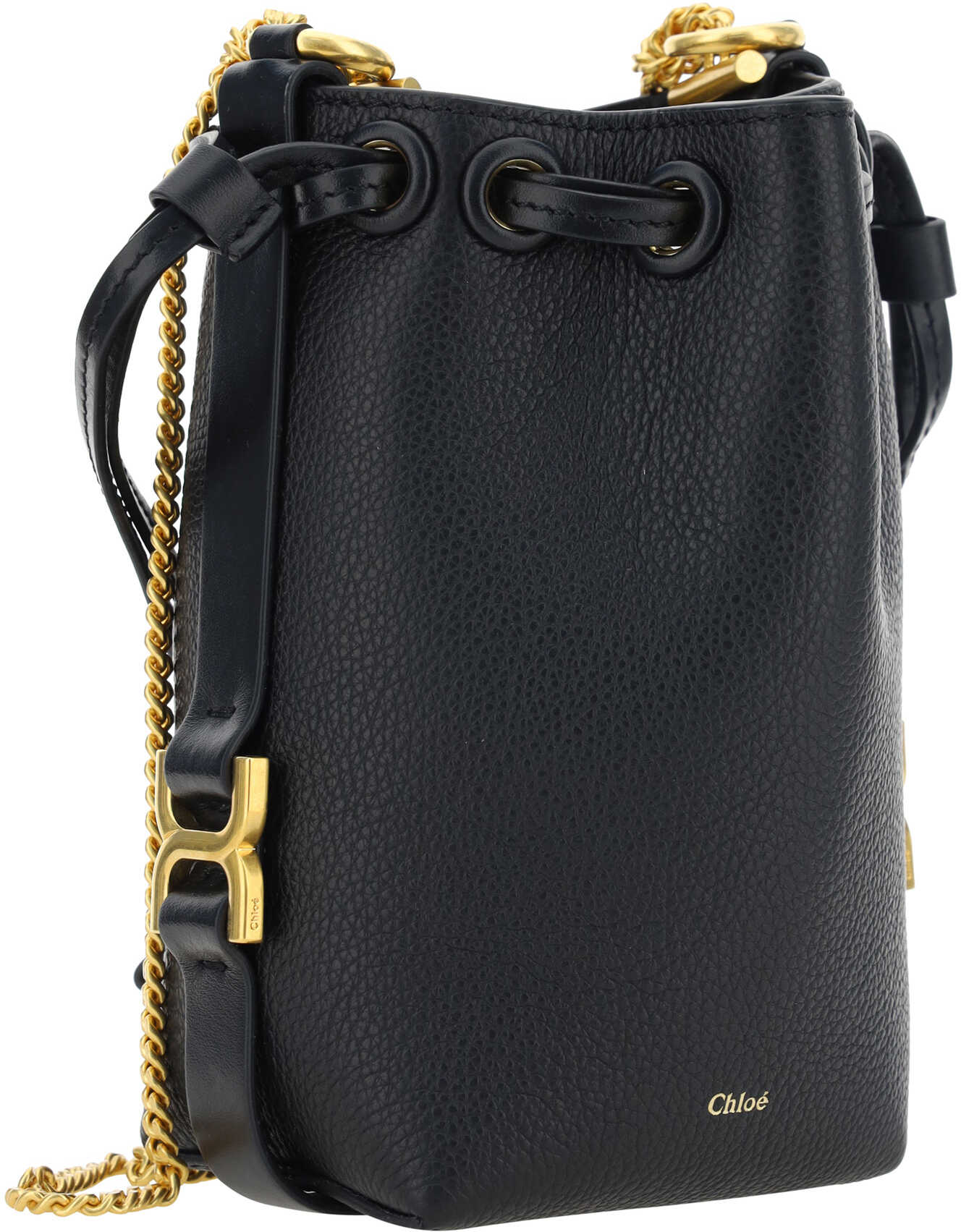 Calfskin Micro Marcie Shoulder Bag by Chloé, gold-tone chain shoulder strap, a leather top drawstring fastening, a contrasting branded press-stamped logo to the front, a grained leather design and gold-tone hardware.