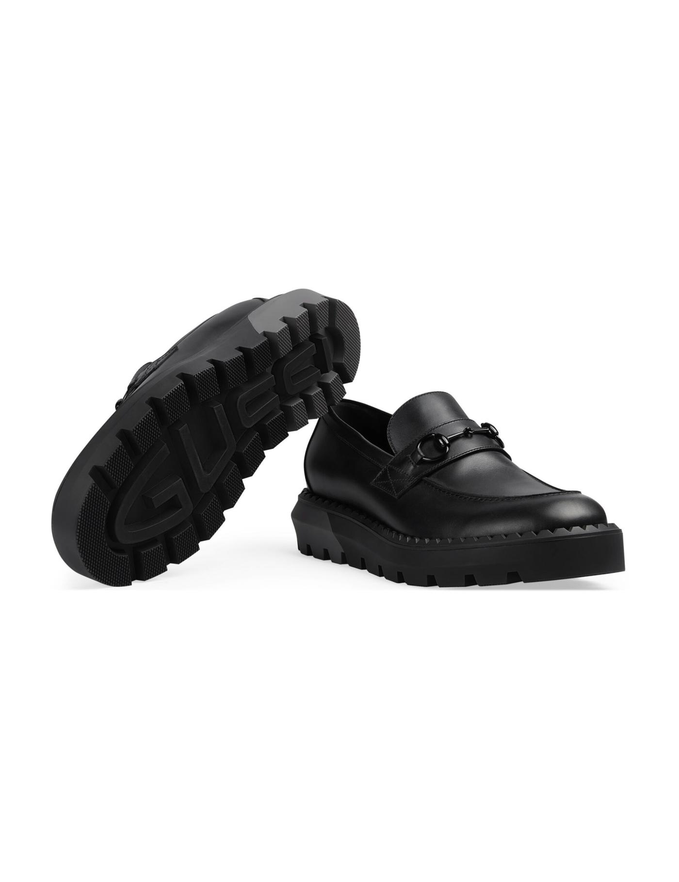 Gucci often reinvents traditional designs with unexpected elements, as showcased by these loafers. Crafted from smooth leather, the chunky sole is decorated with a playful splash of grey.