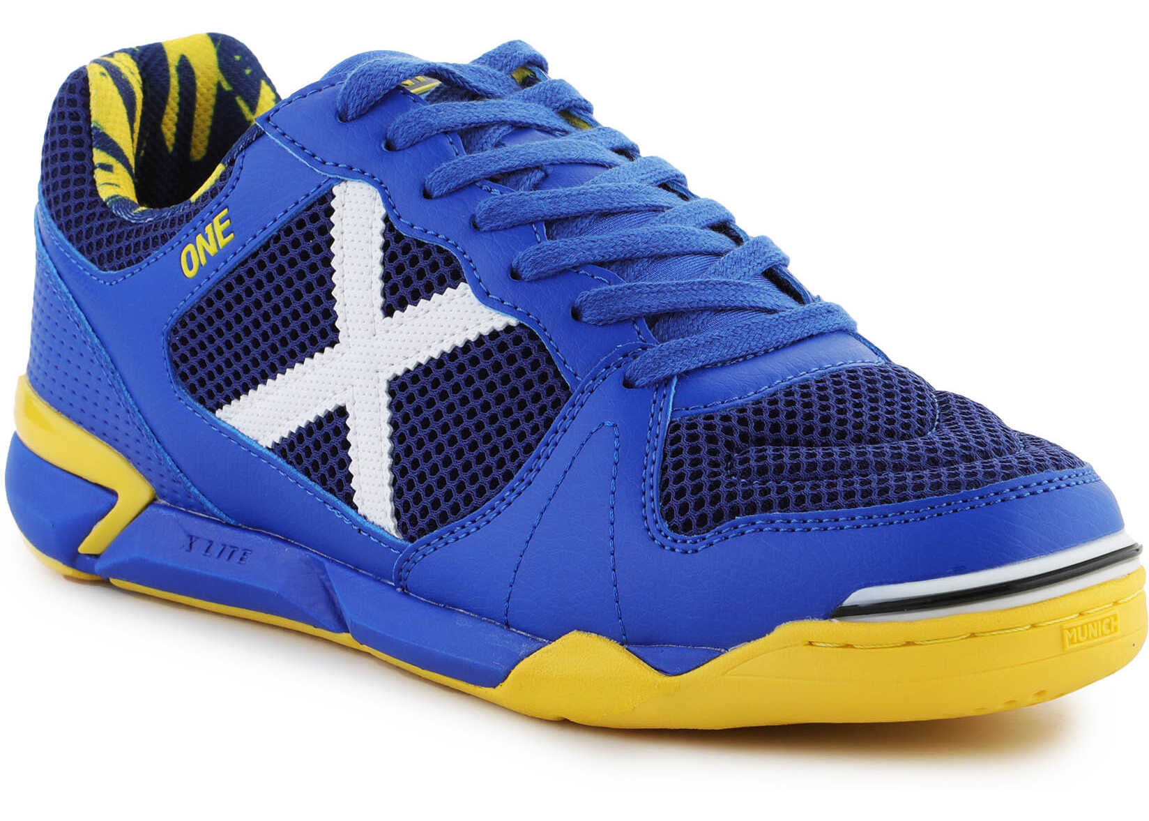 Munich 3071058 football shoes are men's indoor footwear from Munich. This is a model with a low upper made of blue synthetic material, with laces. The interior of the shoe is lined with textile material. The sole is rubber and has great grip. The weight of the product including packaging is 0.8 kg.