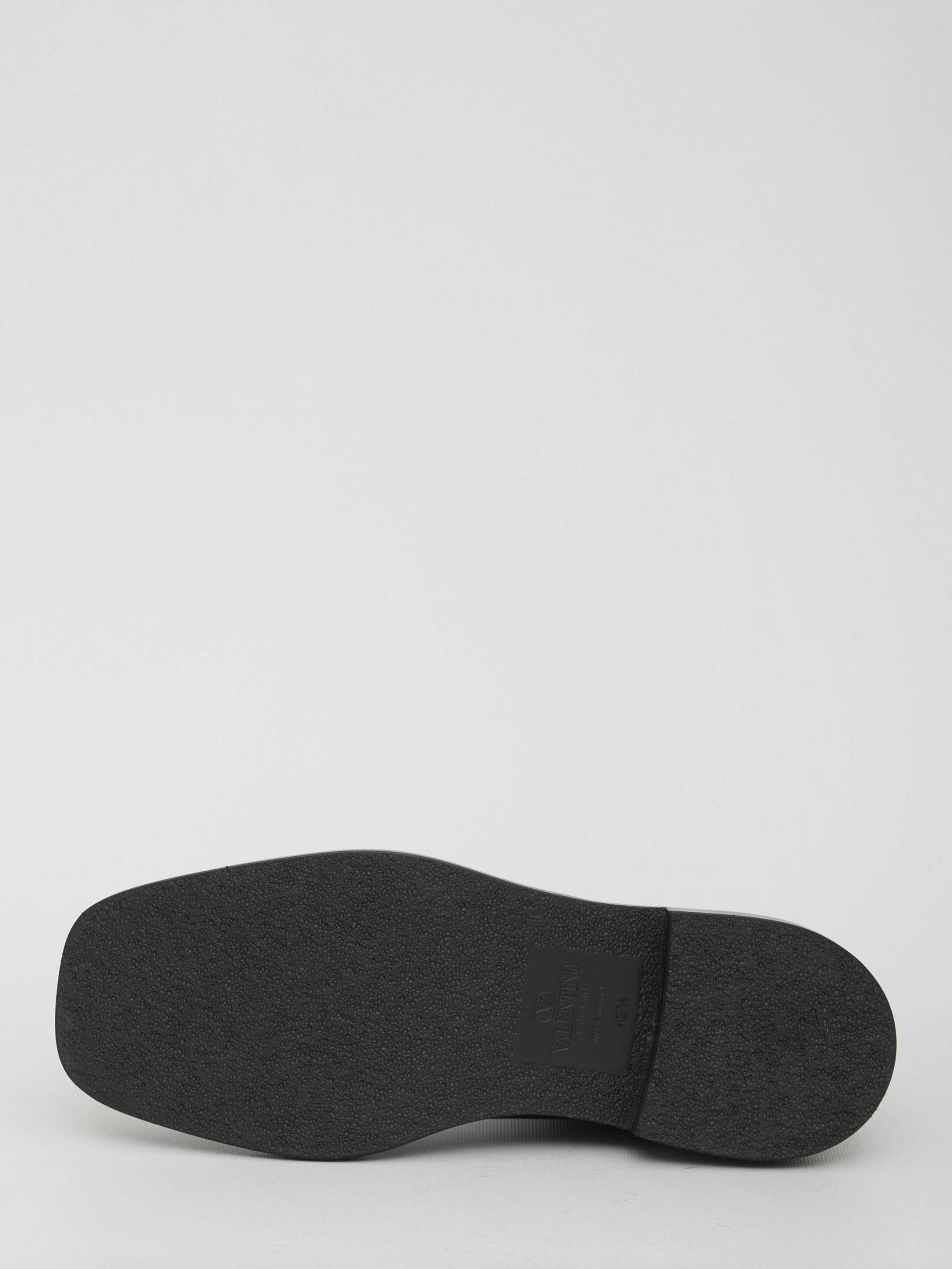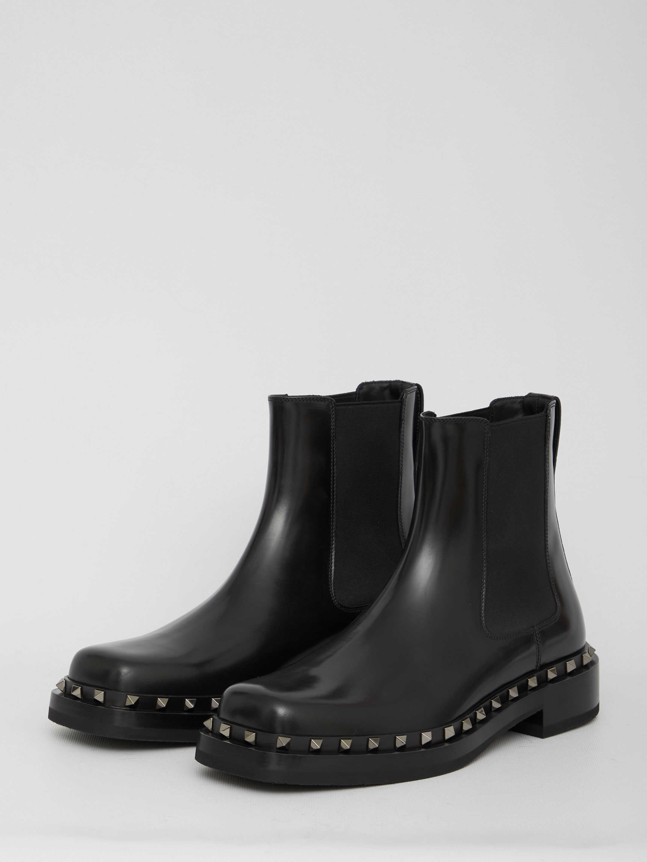 Valentino Garavani Rockstud M-Way boots in black calfskin with tonal studs. Side elasticated inserts. Square toe. Leather and rubber sole. Any leather imperfections are not to be considered manufacturing defects, but a peculiarity of the material.