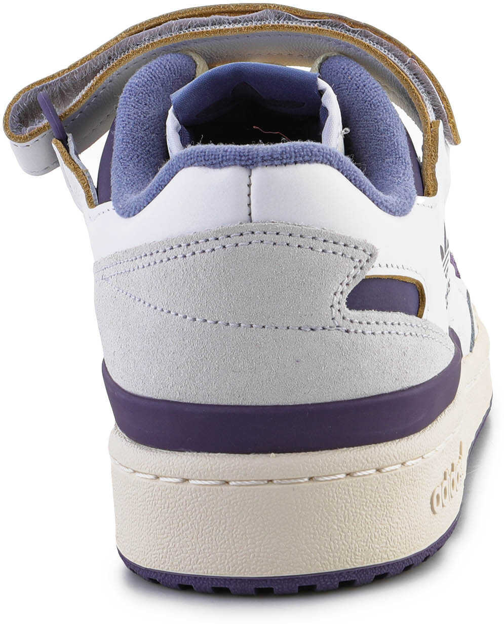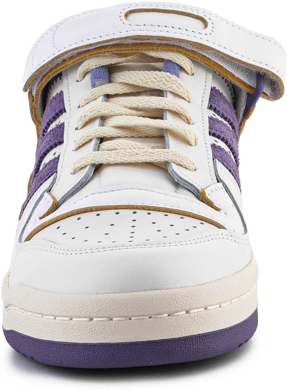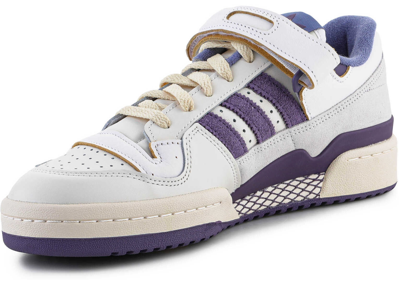 Adidas Forum Low shoes are retro-style sneakers from 1984. The upper is constructed from off-white leather with accents of white and purple to commemorate the OG look and feel.