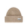 Ganni beanie made in beige wool blend with a ribbed pattern. Logo label on the front.