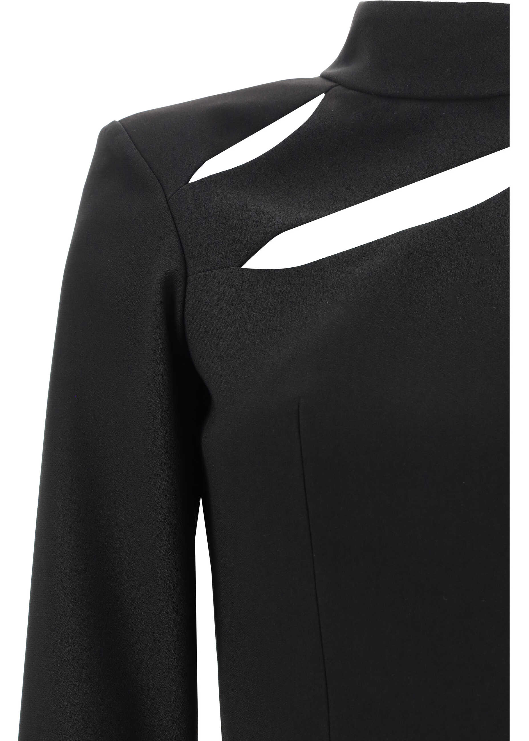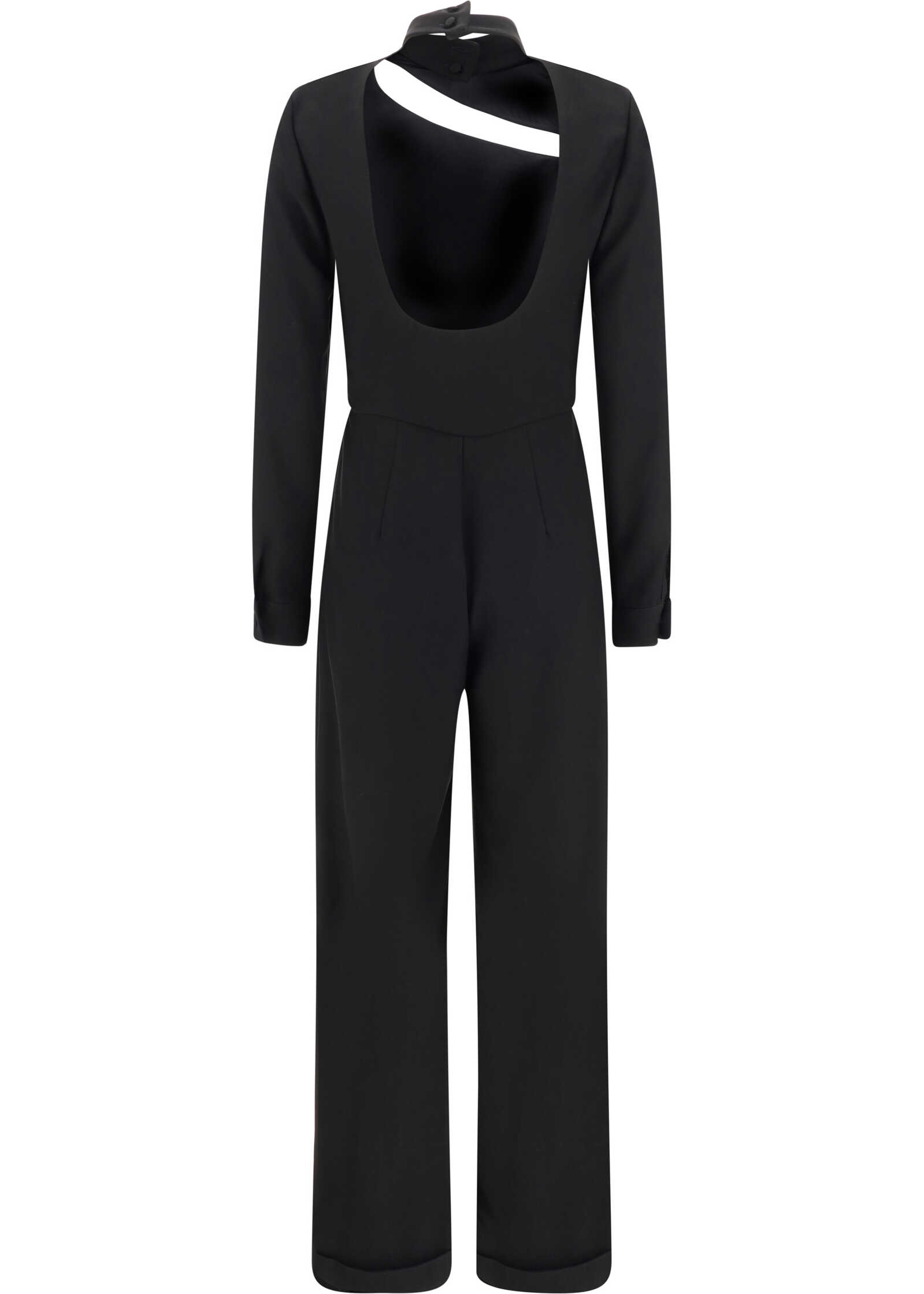Raquel Jumpsuit by Raquel Diniz, high neck design, back and side zipper closure, cut out detailing on front, wide opening on back, monochrome design, adjustable cuffs, regular fit.